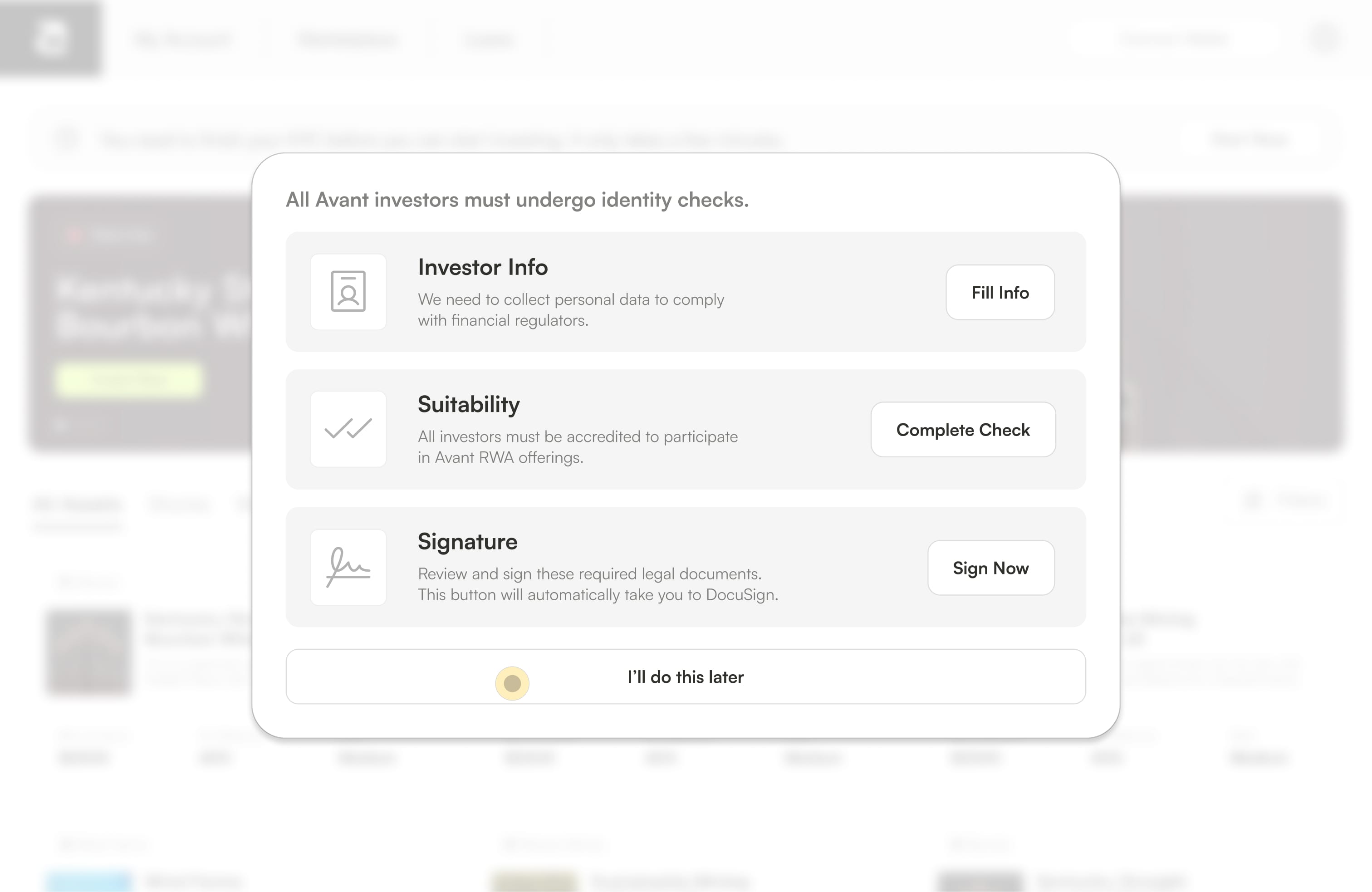 Avant was a RWA platform, that allowed crypto holders to invest in real-world assets including things like Whiskey, Gold, Mining Farms etc. Tricky part was to also make sure we have a loaning platform in-built so people didn't have to use actual dollars and could use their crypto wallet to get real world return.